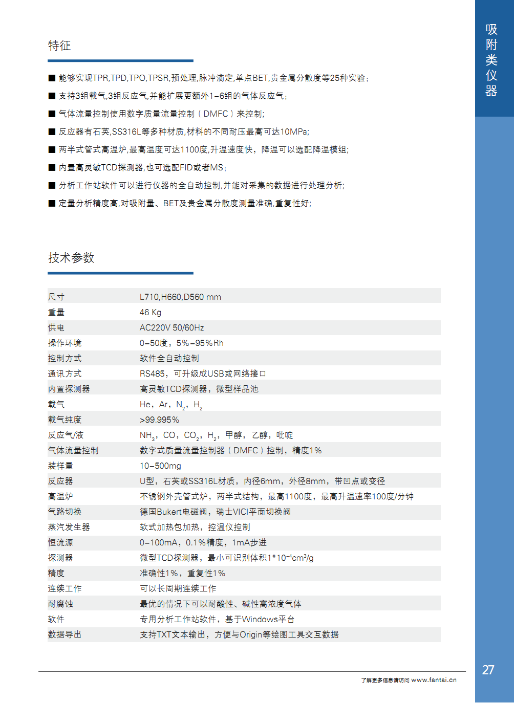 全自動(dòng)程序升溫化學(xué)吸附儀,TPR,TPD,TPO,TPSR等多種功能,可以實(shí)現(xiàn)最高1200度的多段程序升溫,內(nèi)置TCD或FID檢測(cè)器,全自動(dòng)軟件控制,留有GC或MS接口。